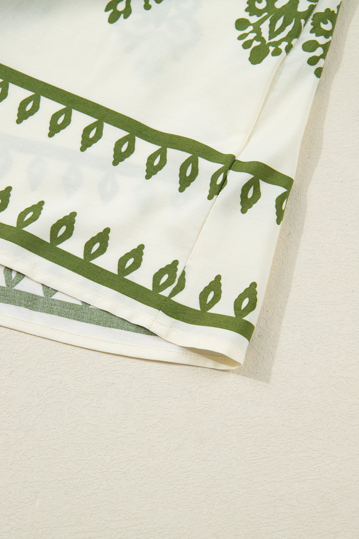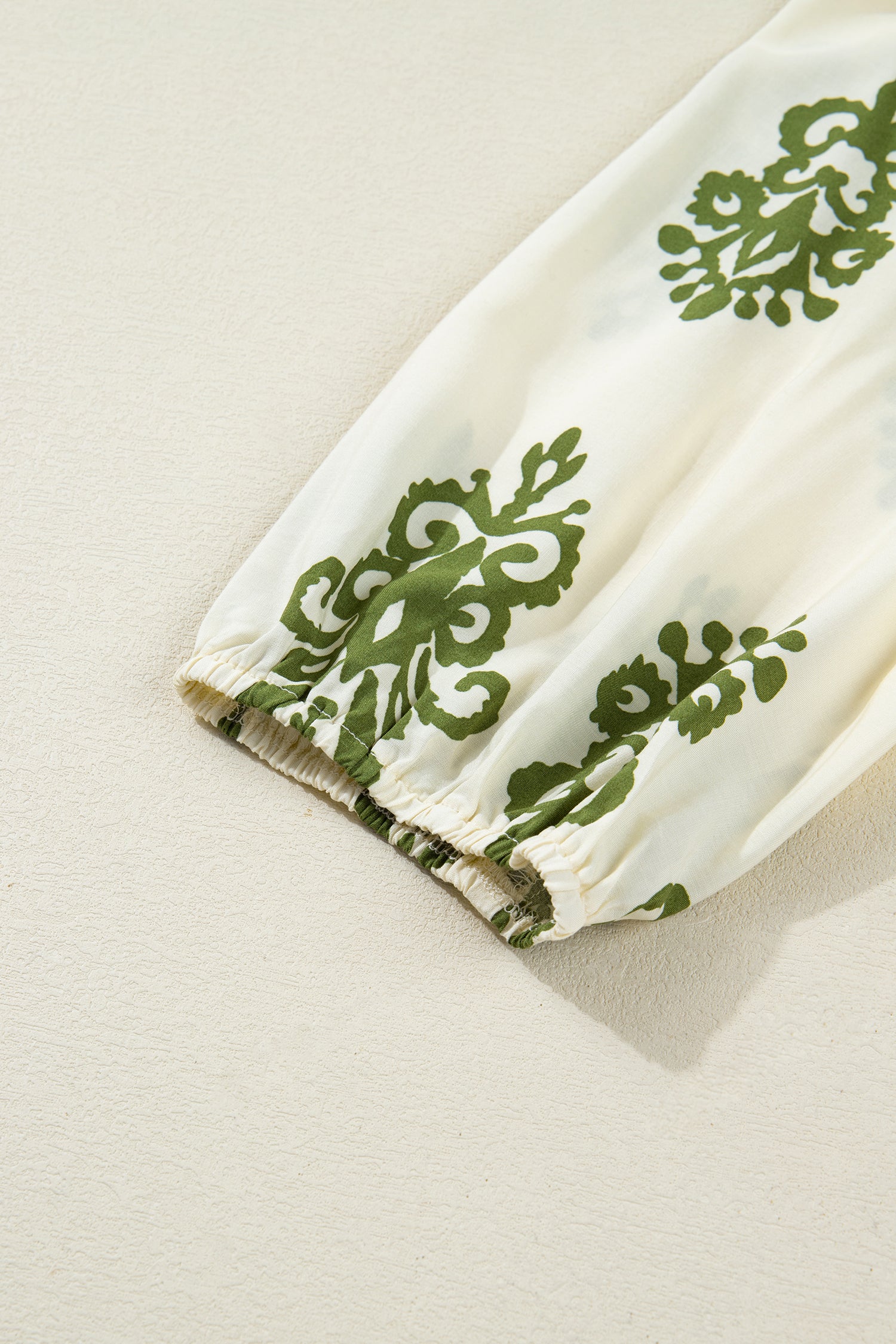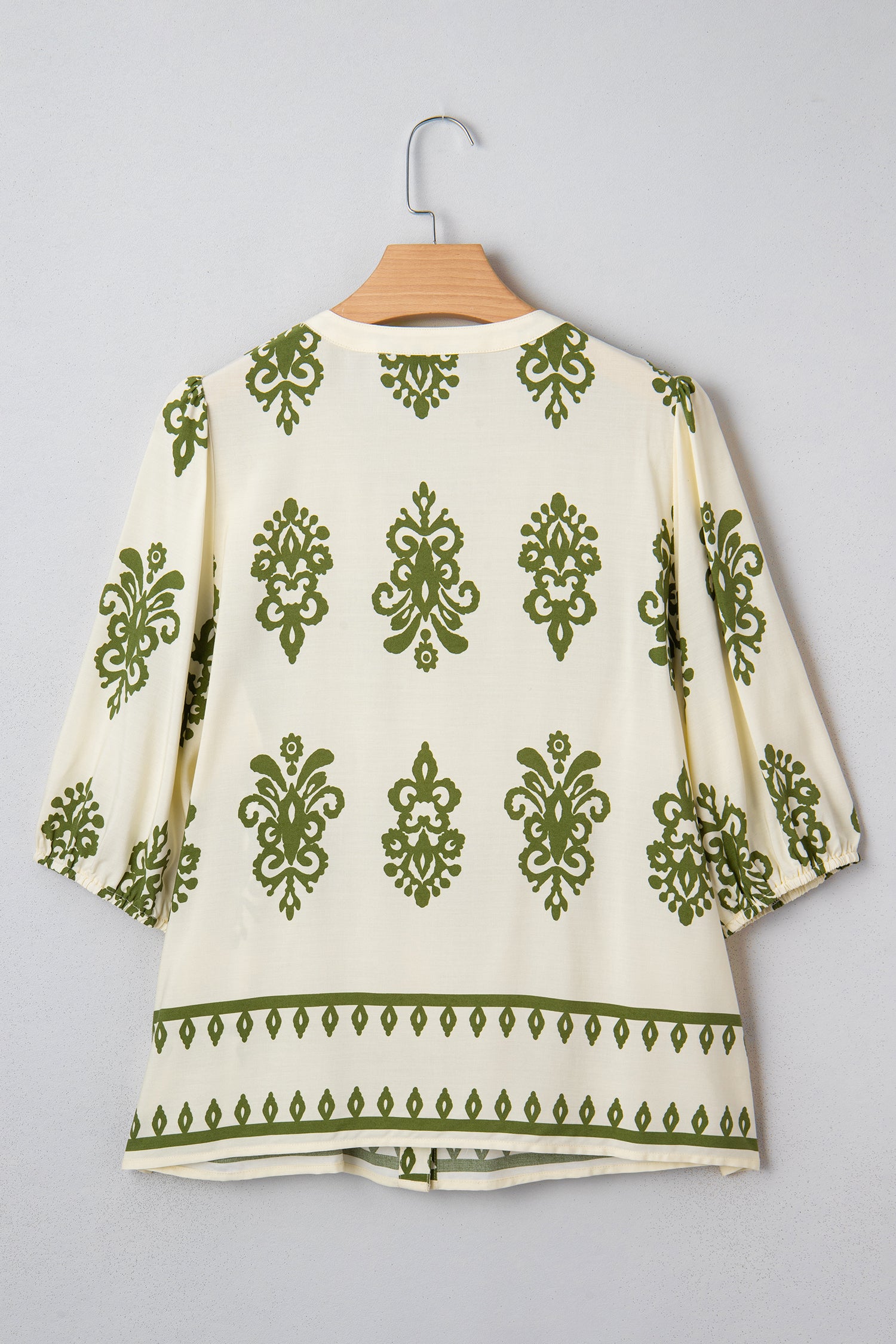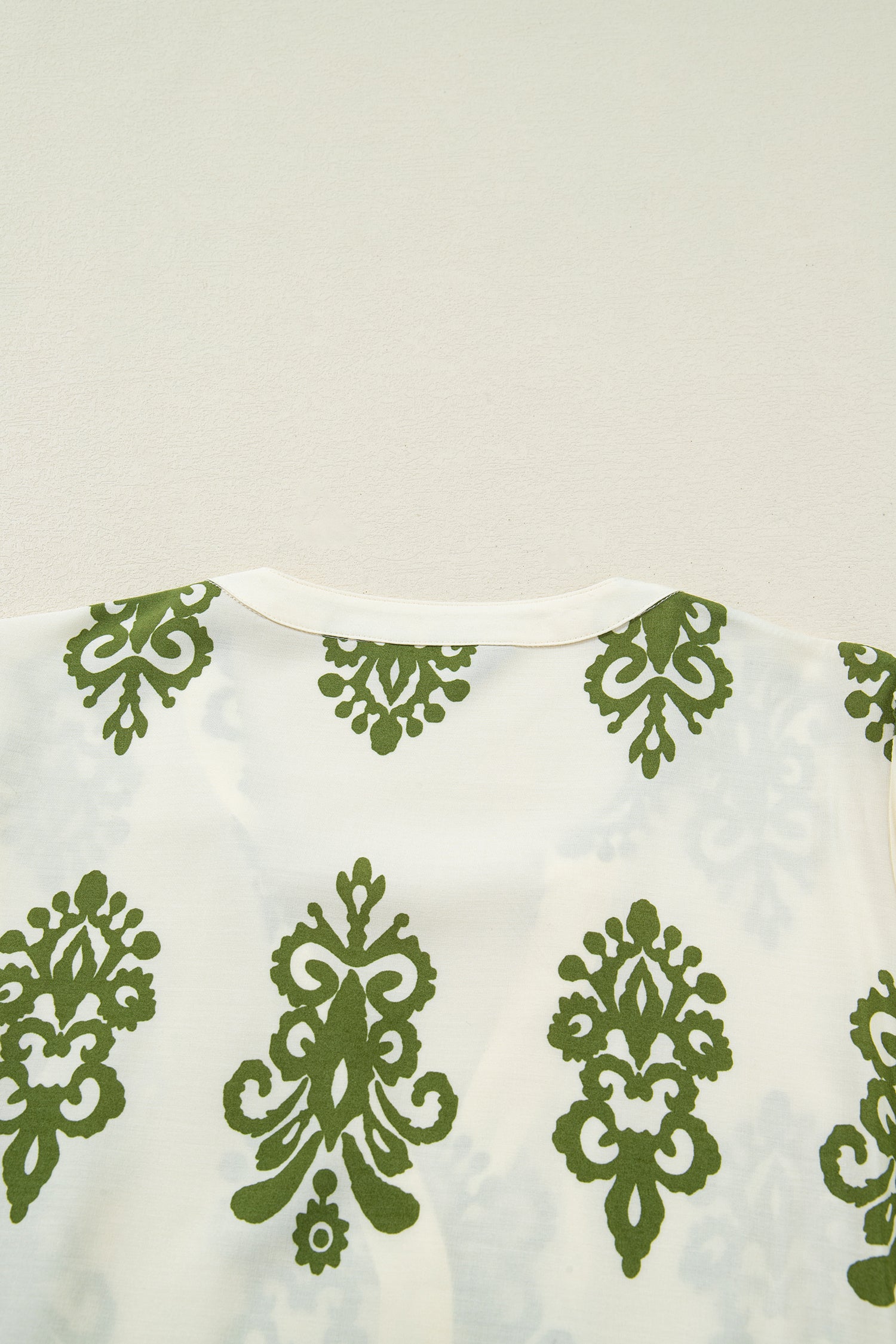 - Elegant floral print blouse with tie V neck and button-down front.