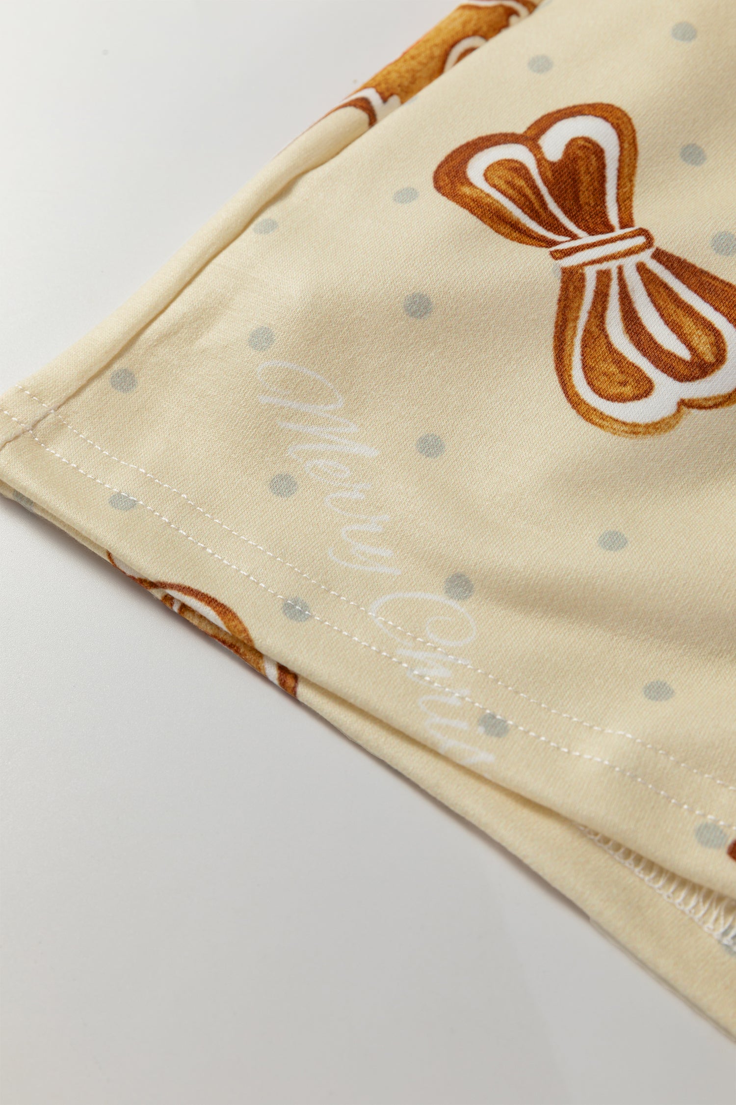 - Festive gingerbread man print adds holiday cheer.