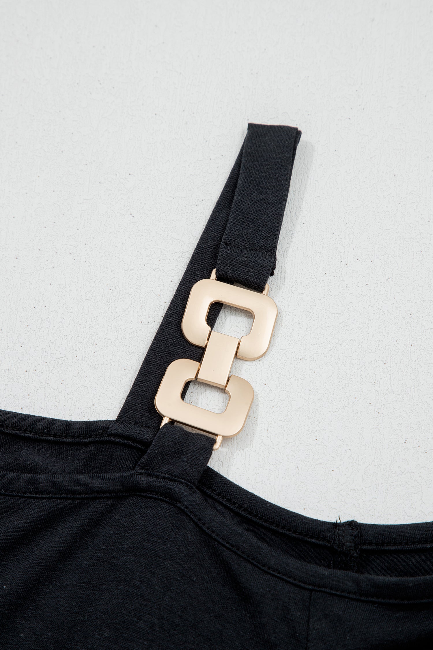 Black Asymmetric Shoulder Detail Short Sleeve Plus Size Maxi Dress