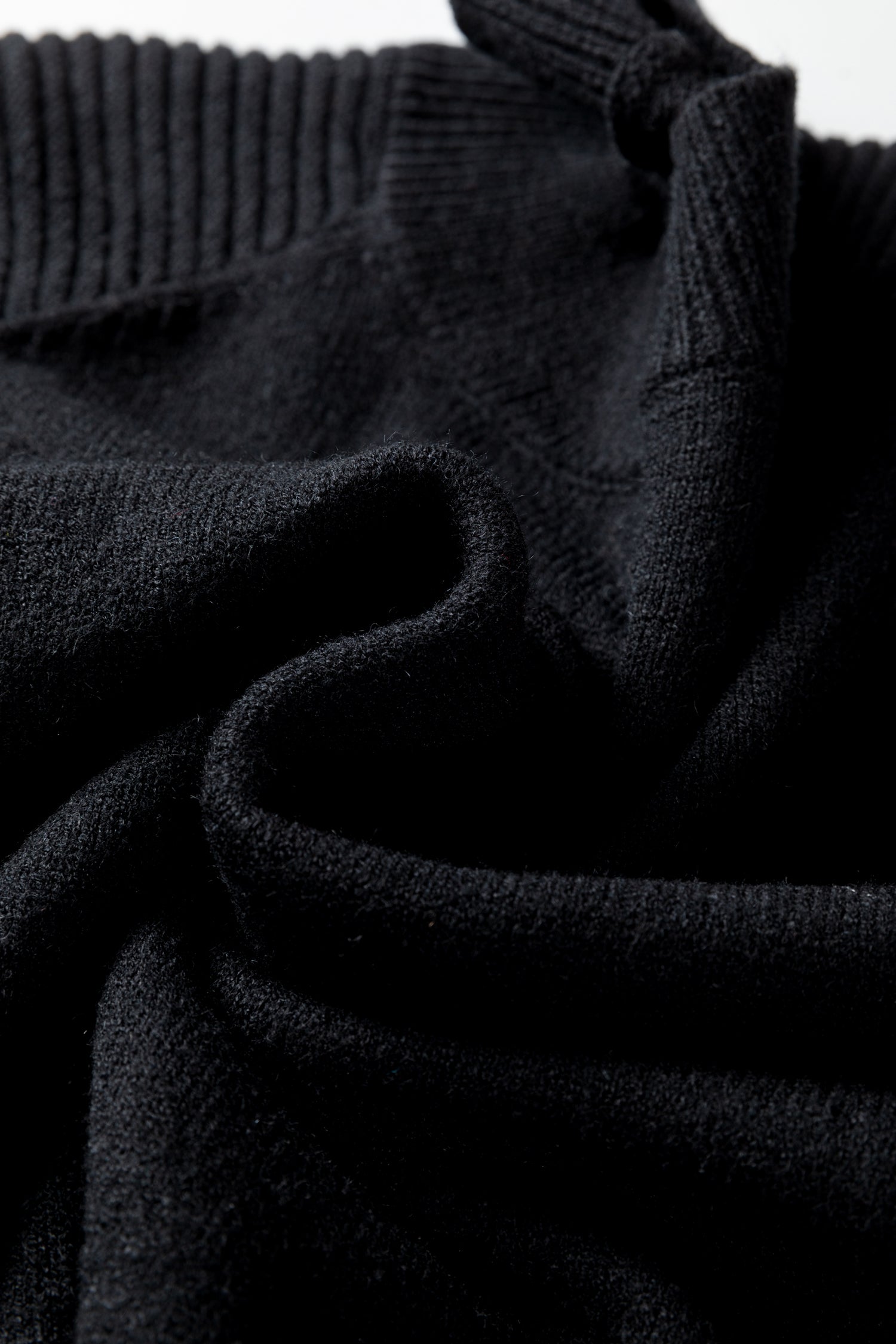 Black High Neck Puff Sleeve Sweater Pleated Mini Skirt 2pcs Knitted Outfit