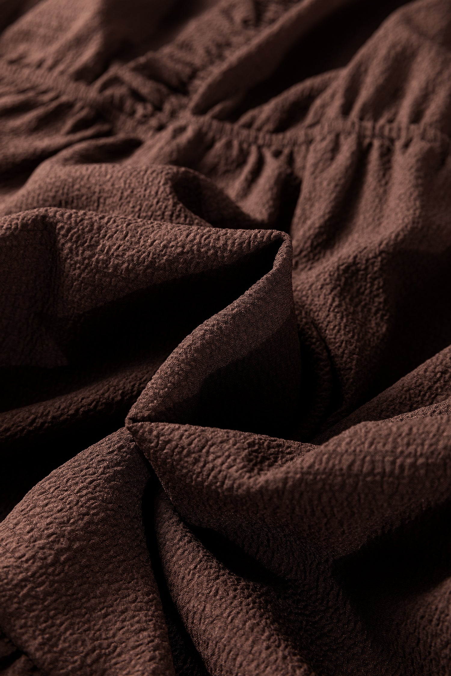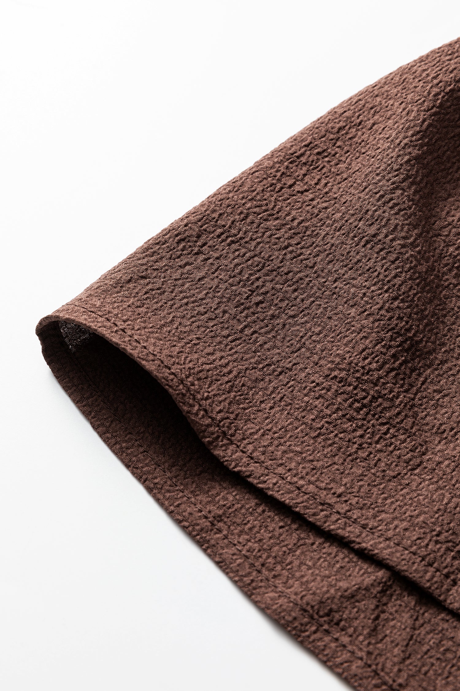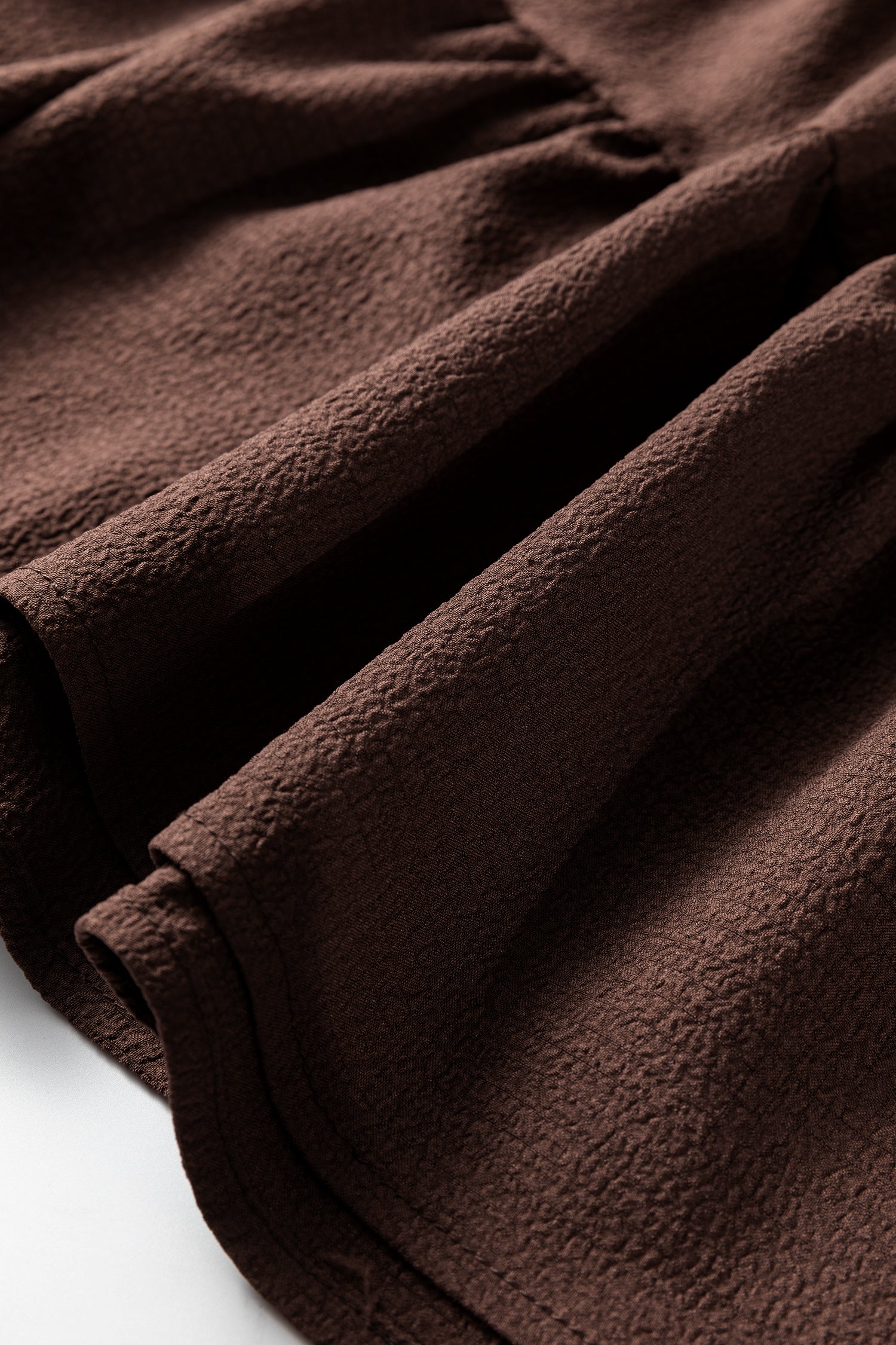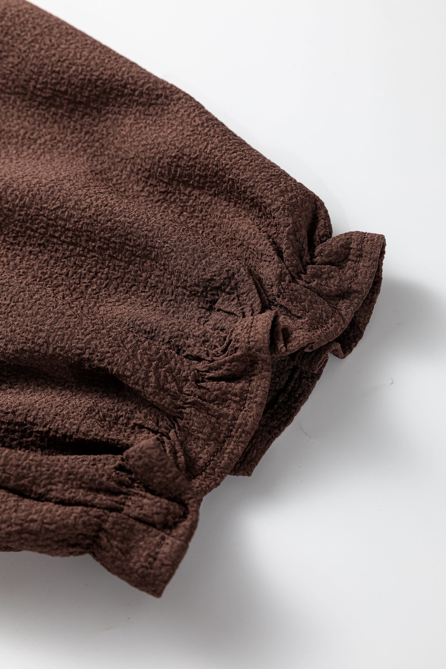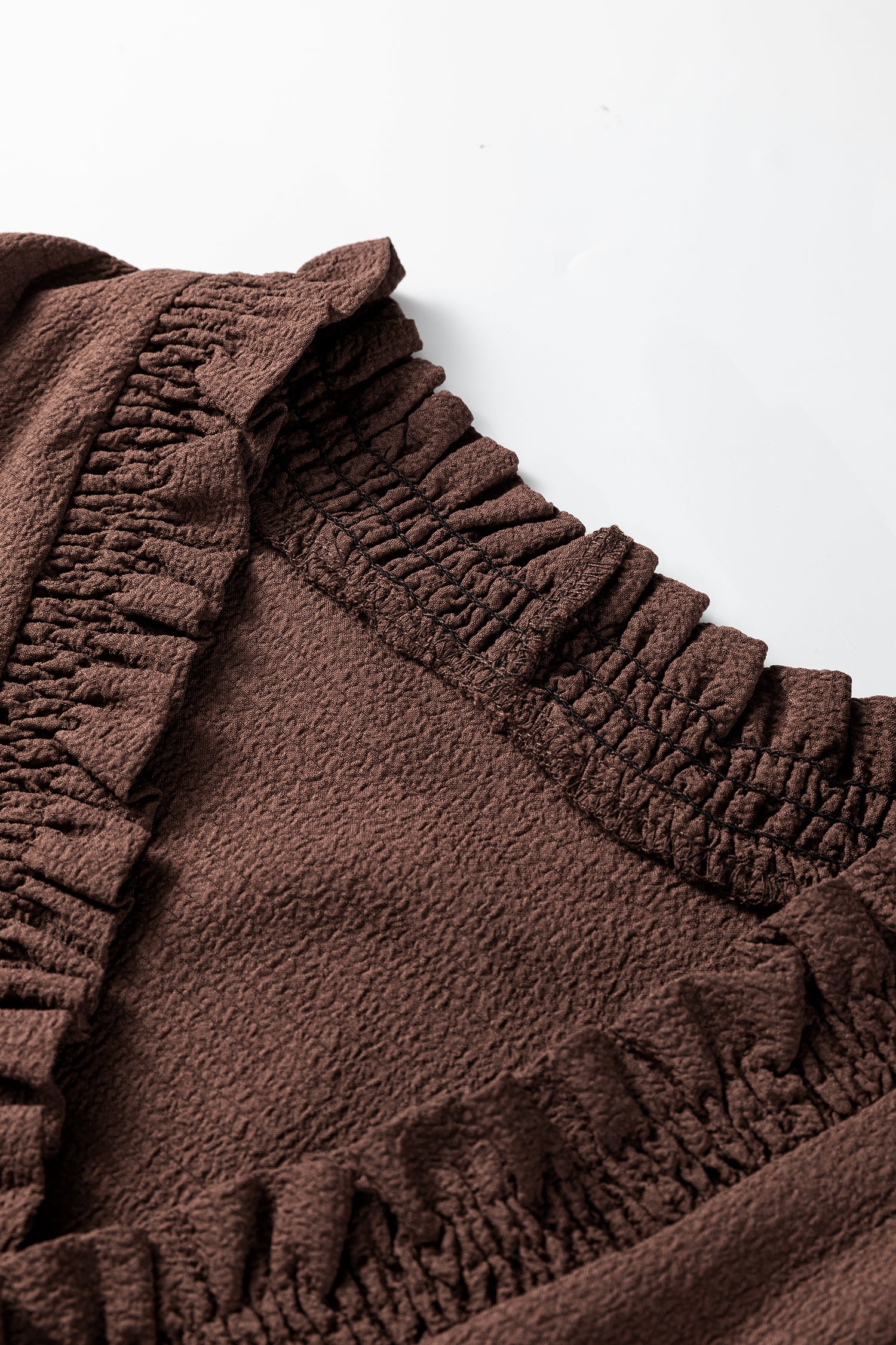 Coffee Plus Size Frilled Trim V Neck Puff Sleeve Textured Mini Dress