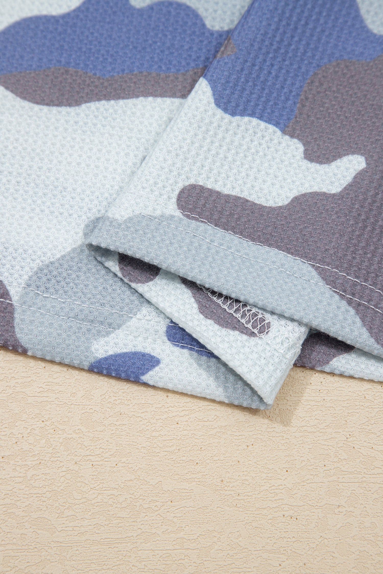 Gray Plus Size Camouflage Print Textured Casual Tee