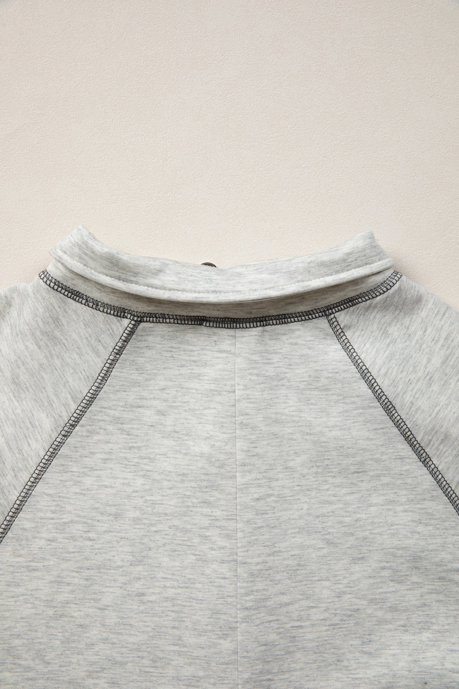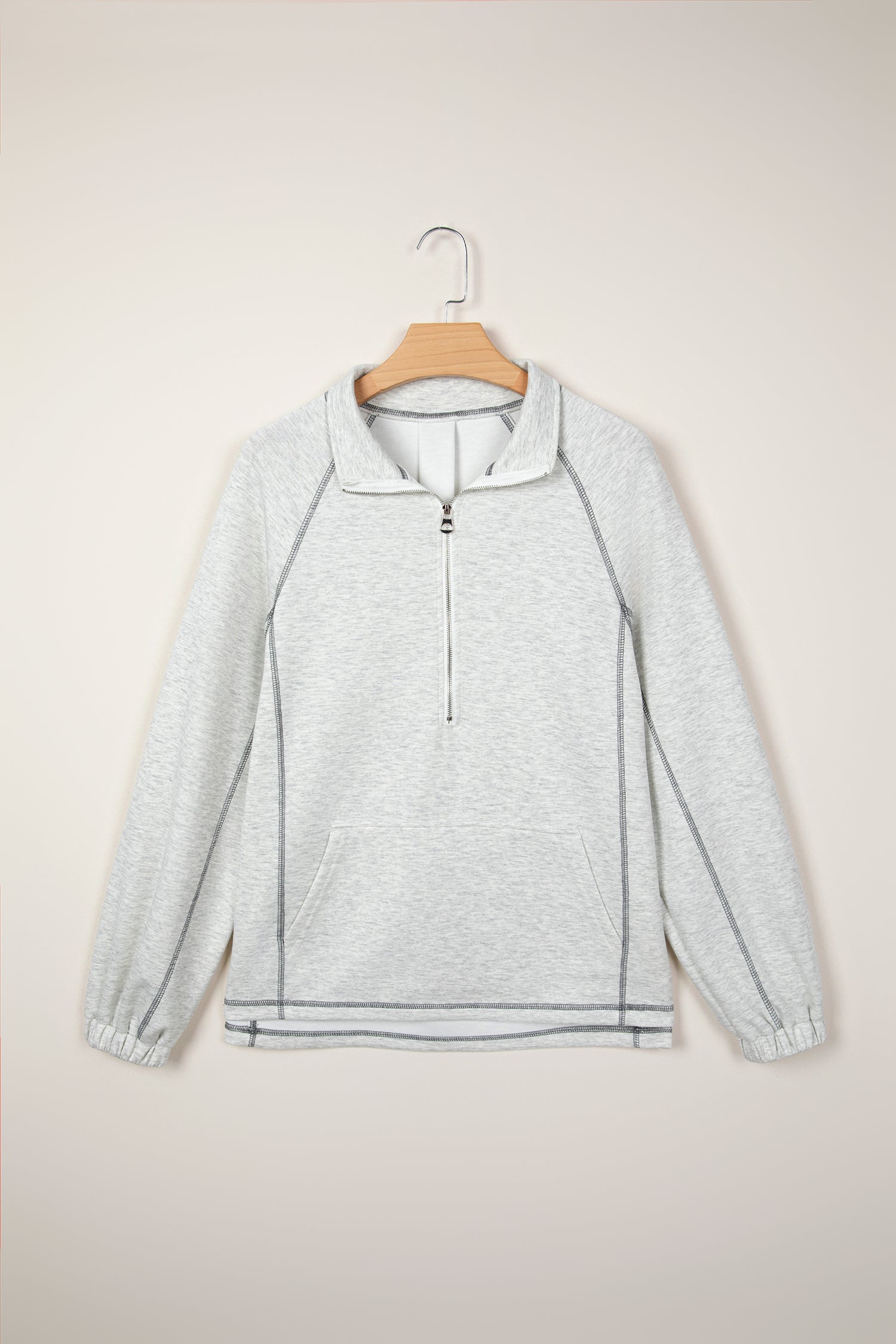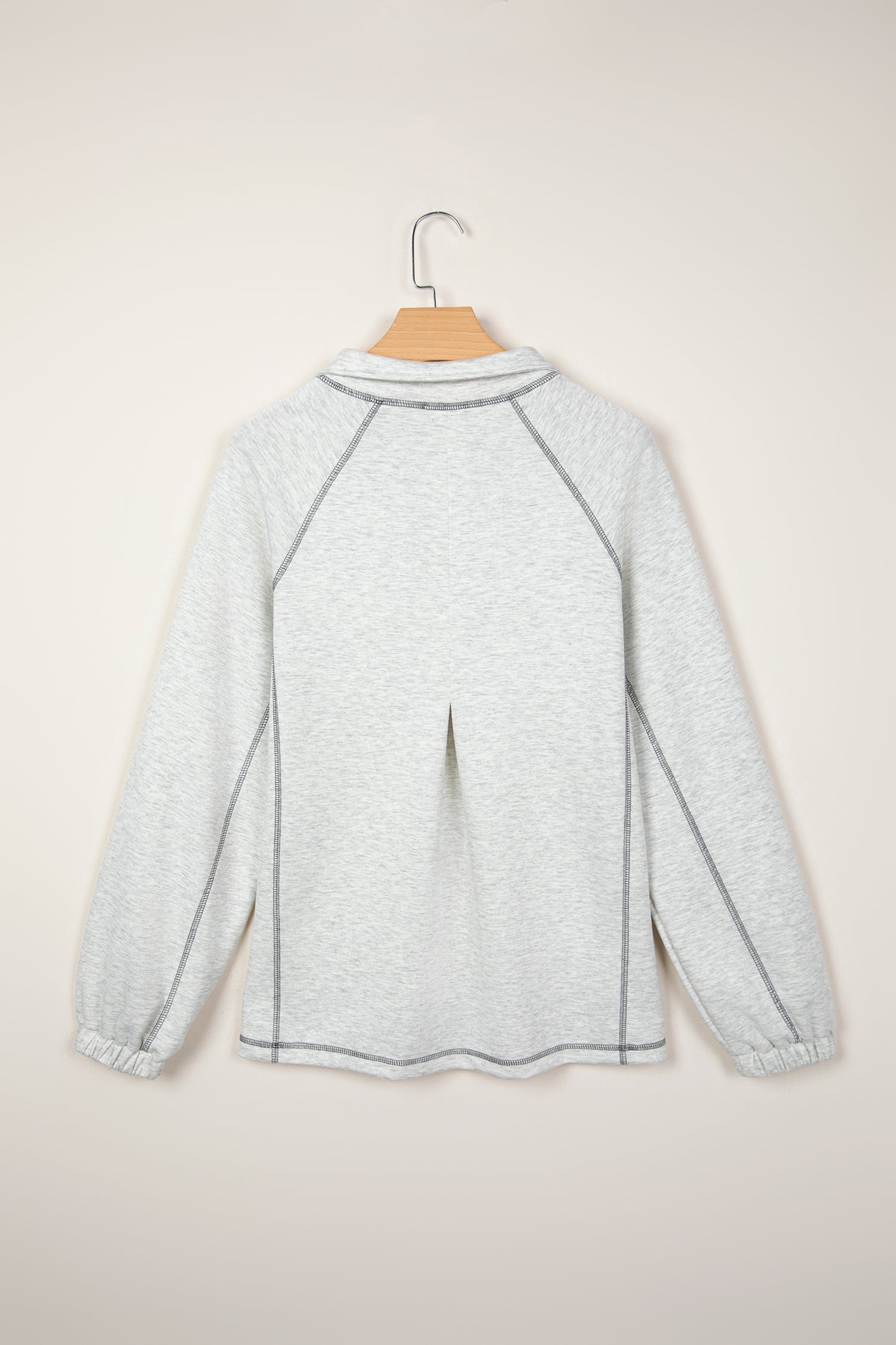 Light Grey Half Zip Stand Neck Seam Detail Long Sleeve Top