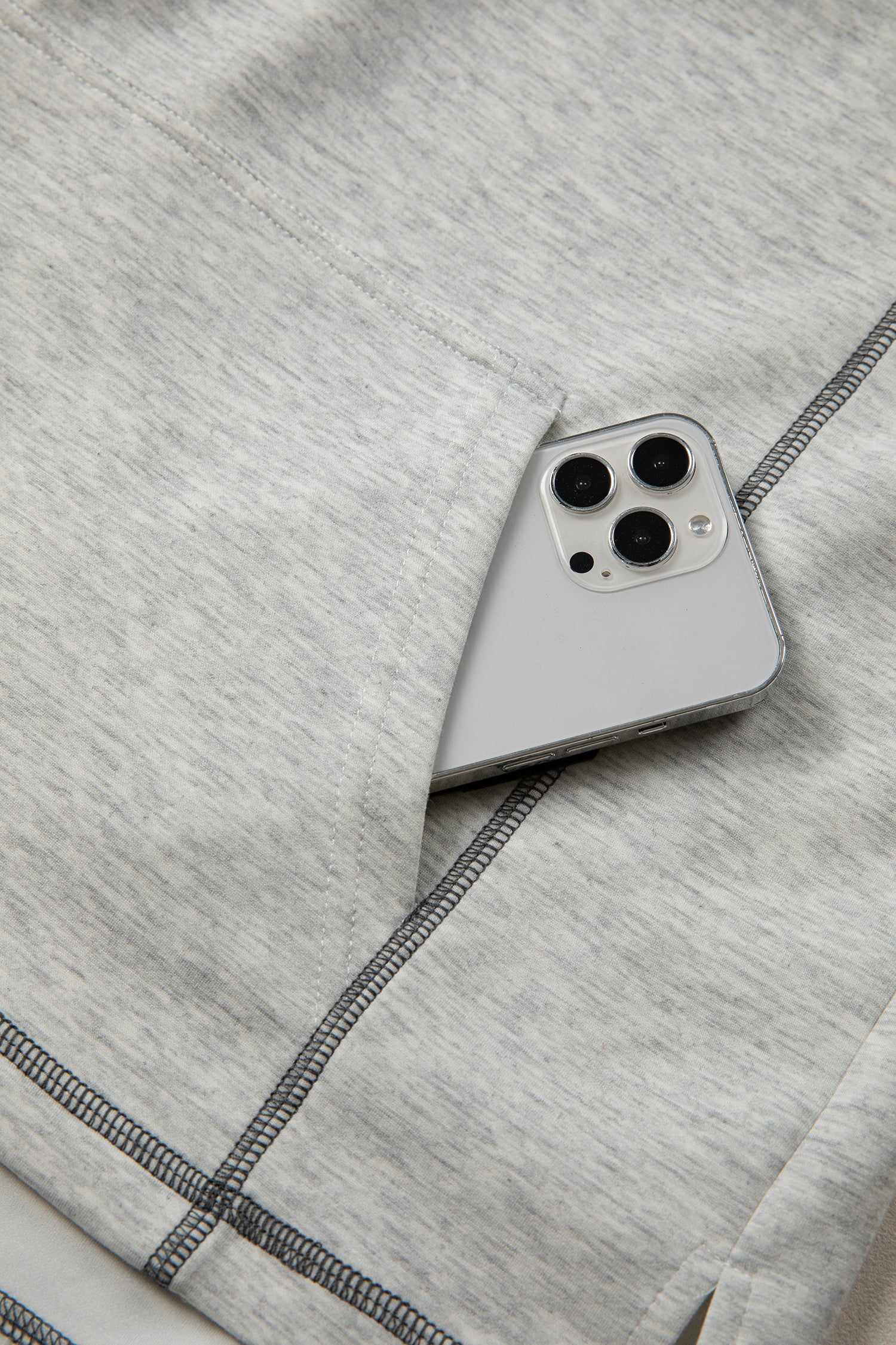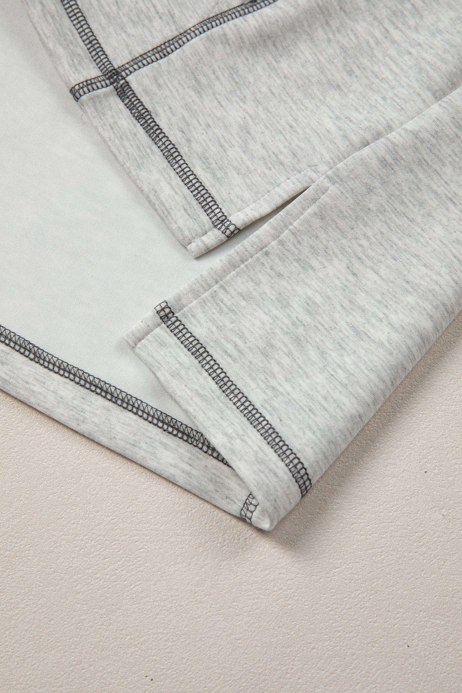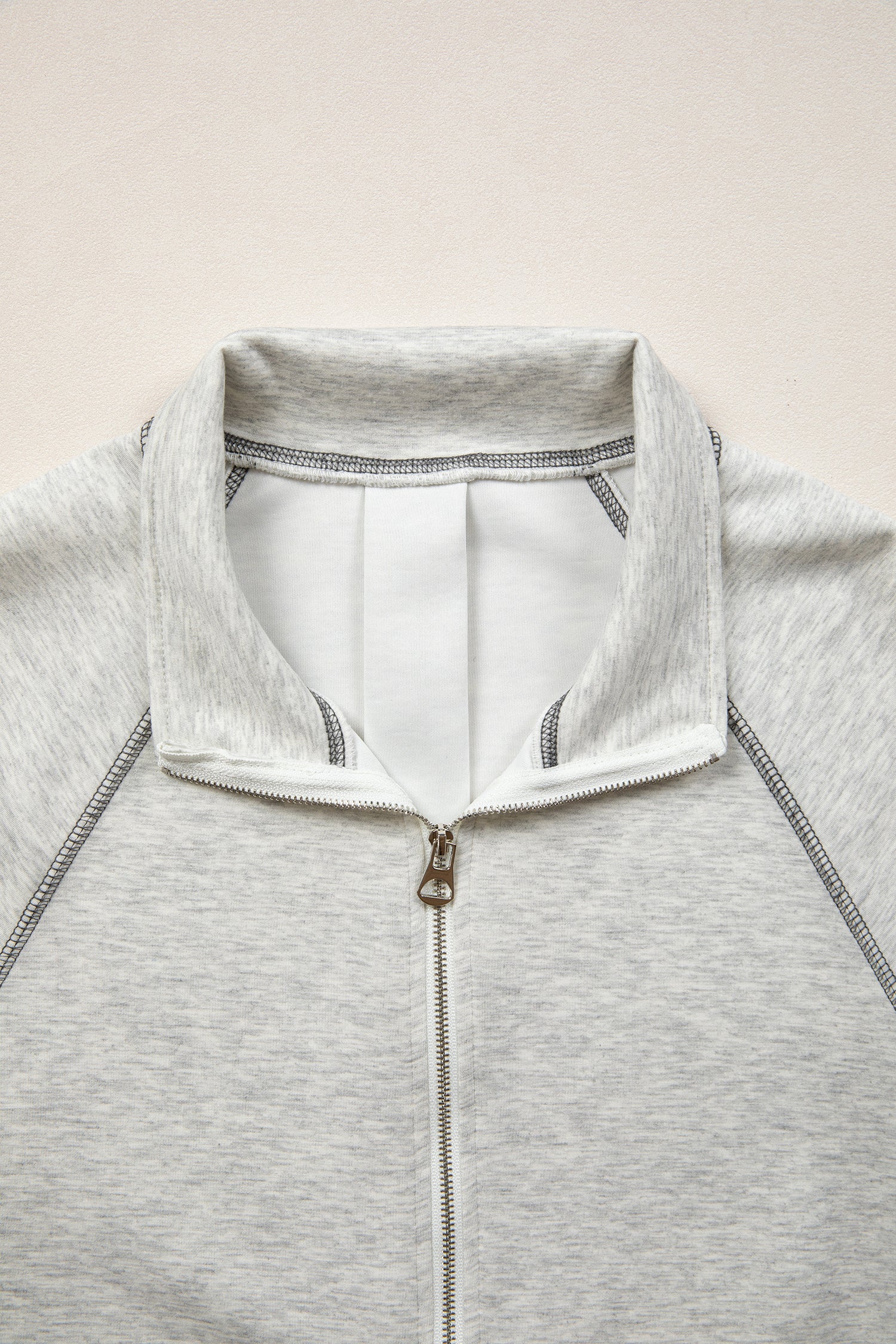 Light Grey Half Zip Stand Neck Seam Detail Long Sleeve Top